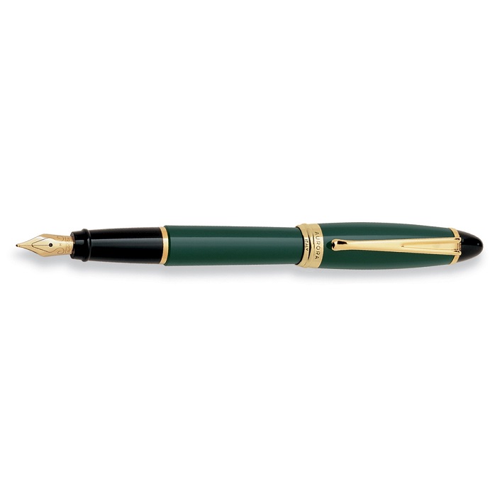 Ipsilon Resin, cartridge- of convertervulpen met goudkleurige penpunt. Groen resin dop en houder, gouden clip en accenten