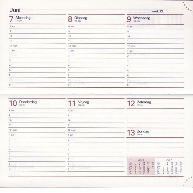 Gebonden agenda met harde kaft, met bladwijzer/leeslint, 128 pagina’s, voorzien van afscheurbare perforatiehoeken,  1 week per 2 pagina’s, een beknopt jaaroverzicht op elke pagina, een uurindeling van 08.00 tot 20.00 uur, jaarplanners van 2026 èn 2027 inbegrepen en  ruimte voor notities. Formaat: 8 x 16,5 cm
