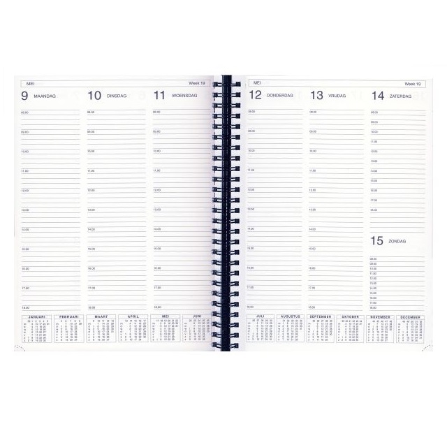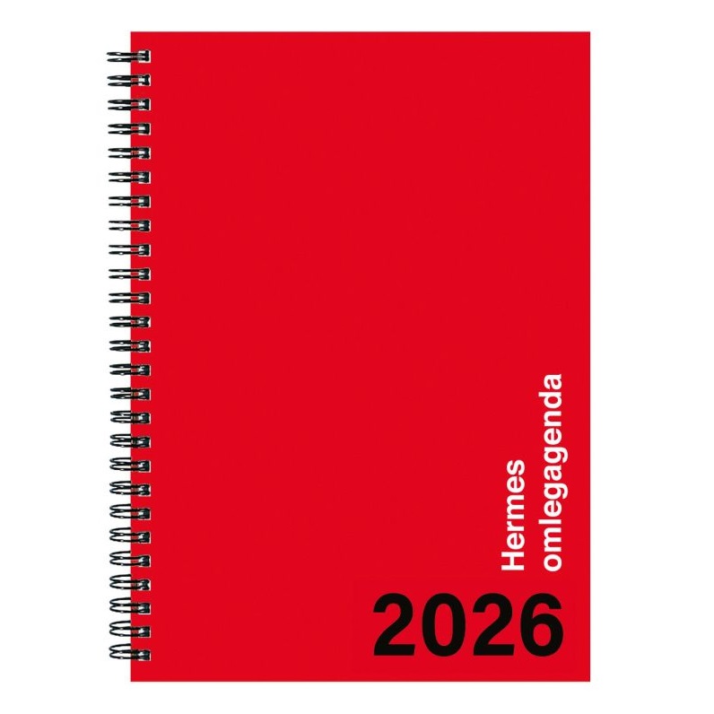 Agenda met harde kaft – Door ringband volledig omklapbaar – 128 pagina’s – 1 week per 2 pagina’s – Voorzien van perforatiehoek – Jaarplanners van 2026 en 2027 inbegrepen – ruimte voor notities Formaat: 30 x 21 cm (A4)