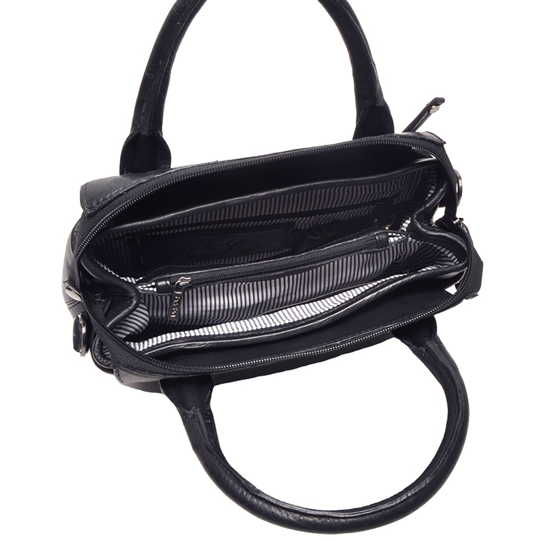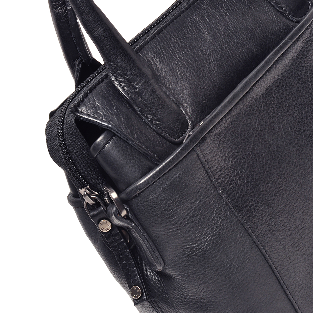 De prachtige handtas uit de Lucca collectie. Door de stevige bodem met 4 beschermende dopjes staat deze tas “als een huis” en dat is handig als je hem even ergens neer wilt zetten! Verder blinkt dit modelletje uit in de talloze opbergmogelijkheden… Het zijn er nogal wat: Een groot verzonken ritsvak aan de voor- én de achterzijde plus twee handige ritsvakken binnenin. Het tasje is ingedeeld met een tussenschot waardoor het hoofdvak mooi verdeeld wordt, ook handig! Verder nog een aantal insteekvakjes voor kleine spulletjes. Als je de tas niet aan de handvatten draagt, dan kan hij gewoon “cross-over” m.b.v. de bijgeleverde lange, verstelbare schouderband.