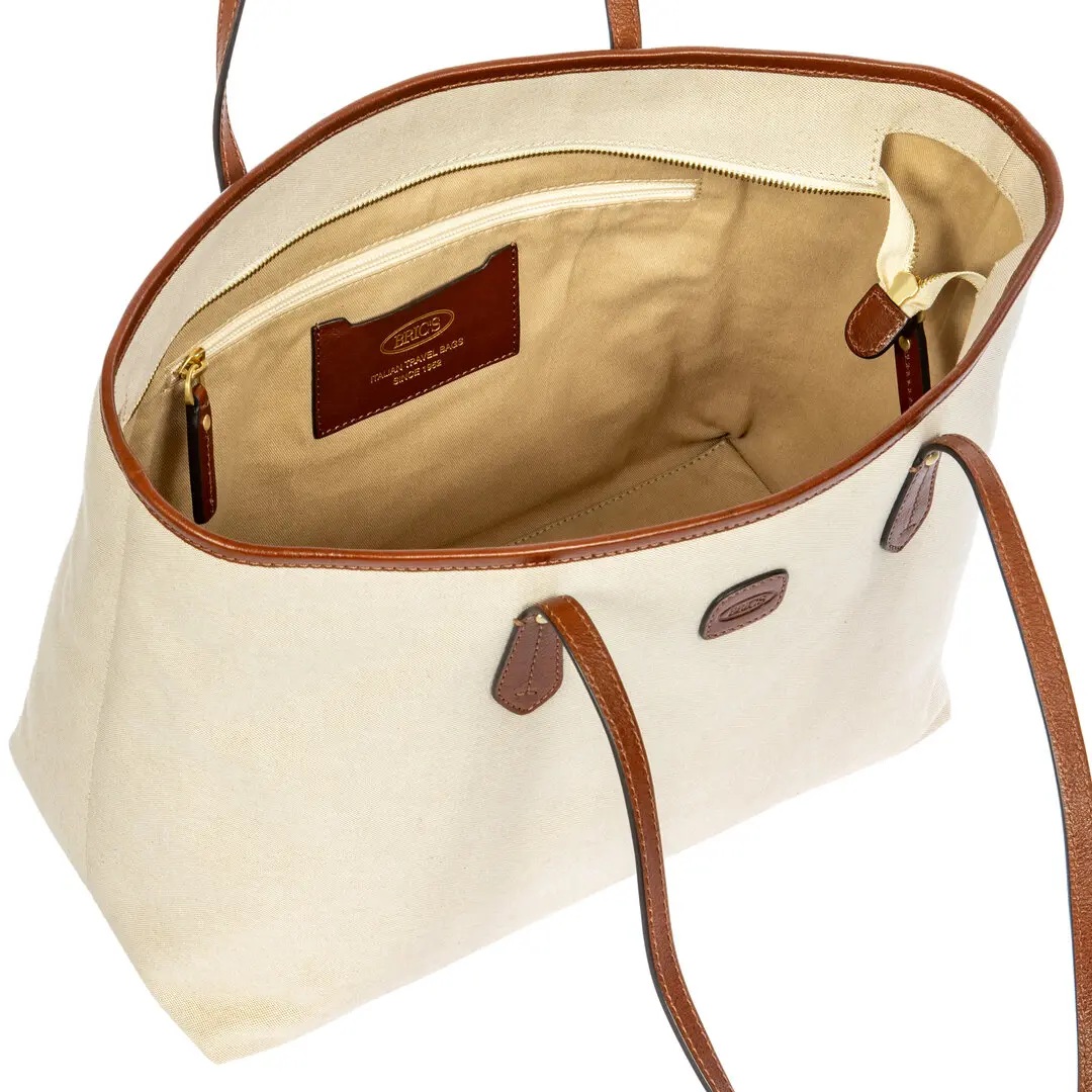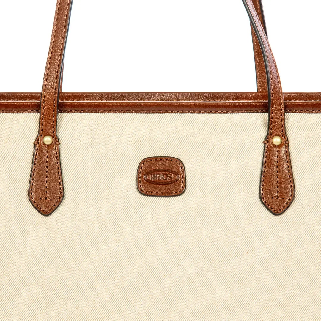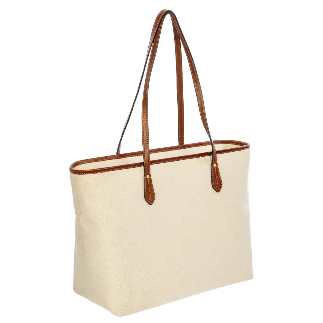 De Volterra Trama tas van Bric’s combineert de natuurlijke elegantie van uitzonderlijk zacht leer met een karaktervol, natuurlijk materiaal zoals katoenen canvas. De Trama SS26-collectie is ontworpen om perfect aan te sluiten op de Volterra-lijn en leent zich voor harmonieuze combinaties, ideaal voor het creëren van frisse en stijlvolle looks.