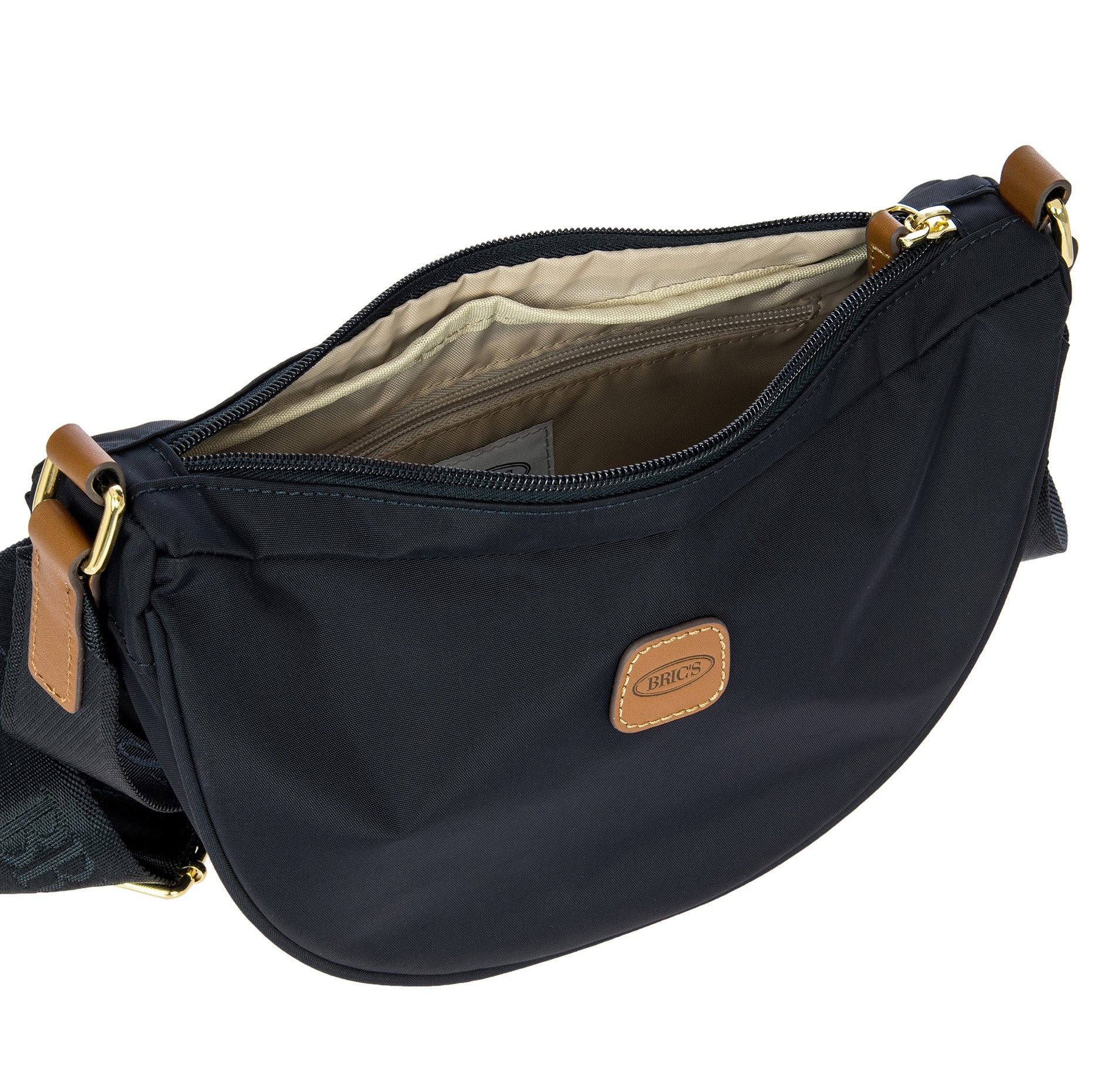 De kleine Halfmoon-schoudertas uit de X-Collection is gemaakt van zachte, lichte en duurzame gerecyclede stof, die waterafstotend is. Dankzij de verstelbare schouderband kan de tas comfortabel over de schouder of als crossbody gedragen worden. De halvemaanvorm is ruimer dan het lijkt, waardoor de tas ideaal is voor dagelijks gebruik. Met een binnenvak met ritssluiting is de tas perfect om je spullen georganiseerd op te bergen. De tas is afgewerkt met details van echt leer en een stoffen voering. Aan de buitenkant is het iconische Bric’s-logo in leer aangebracht.