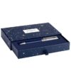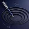 Geef toe aan de verleiding van de Léman balpen, gelakt in parelmoer hemelsblauw om de vallende sterren vast te leggen, die op de dop zijn gegraveerd.
