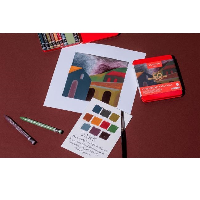 Doos met 10 Neocolor™ II Aquarelle DARK bevat: