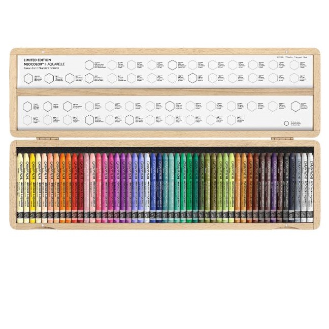 Dit jubileum eert 50 jaar kunst en inspiratie, met een houten doos met 50 Neocolor™ II Aquarelle