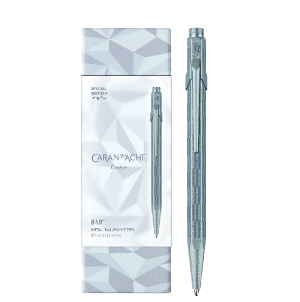 Ontdek de 849™ balpennen, in parelwitte en poolblauwe tinten, versierd met patronen die doen denken aan ijskristallen.