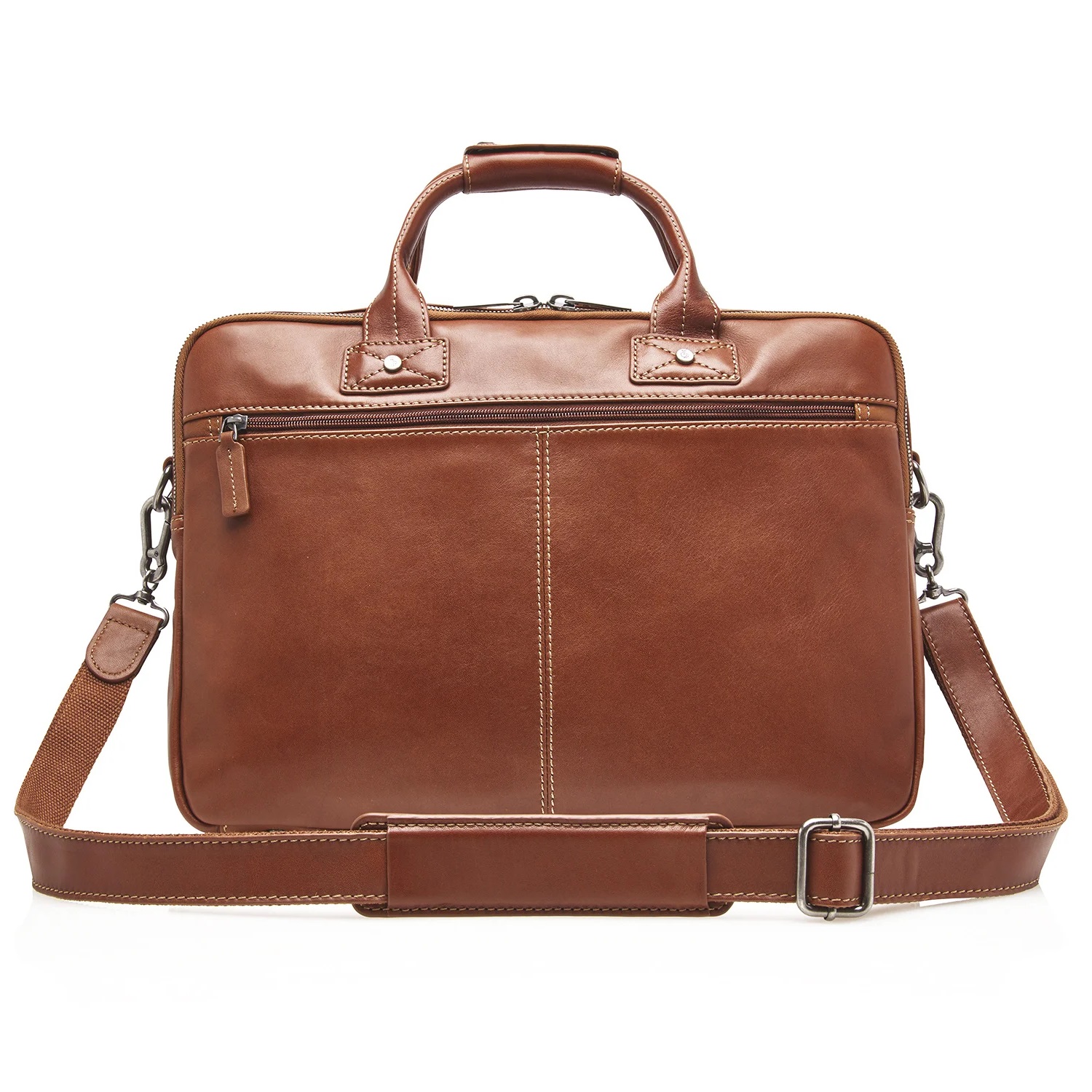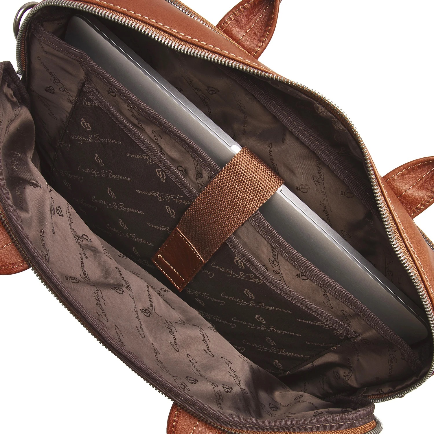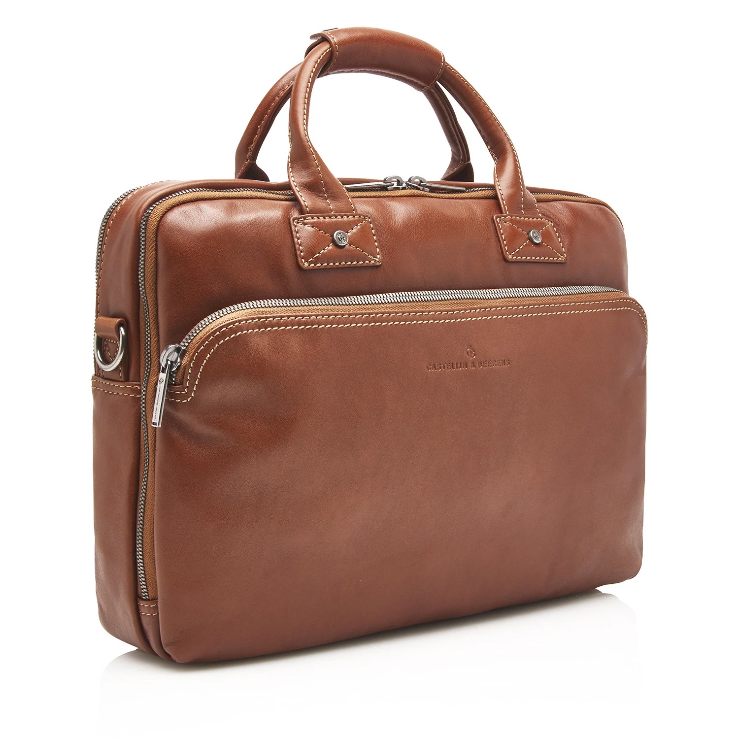Leren businesstas, voorzien van een verstevigd 15,6” vak voor laptop of tablet, 2 grote compartementen voor A4-documenten en een praktisch organiser gedeelte. Dankzij de afneembare en verstelbare schouderband én de trolleyband is de laptoptas erg geschikt voor zakenreizen. Deze leren laptoptas uit de Firenze Business-serie is gemaakt van prachtige Italiaanse runderhuid met een natuurlijke uitstraling en ietwat vettige touch. Het C&B kwaliteitslogo is middels präg subtiel in het leer verwerkt. De luxe leren laptoptas is verkrijgbaar in de kleuren zwart, mocca en lichtbruin. Het Italiaanse leer is duurzaam gelooid volgens richtlijnen van de Leather Working Group. Maat: 43 x 10 x 30cm.