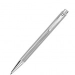 De Caran d’Ache Ecridor Cubrik, een verzilverde en gerhodineerde pen, 6-hoekig met een gravure in de vorm van een heel fijn, blokpatroon, ontstaan door golven door elkaar. potloodvulling 0.7 mm