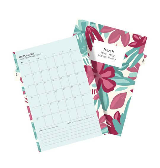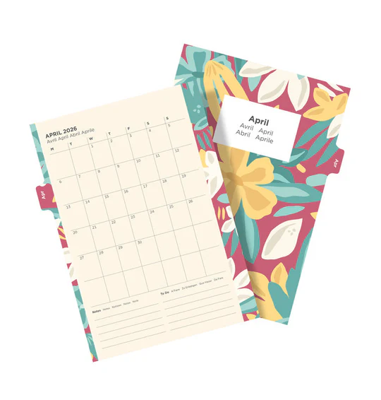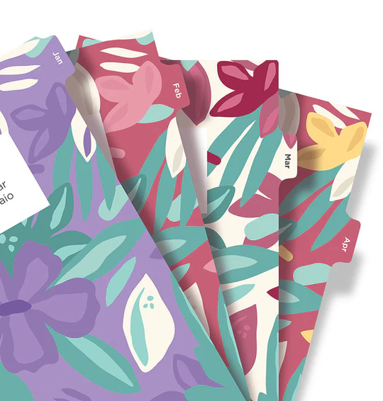 Kleurige agenda-inhoud met mooie aquarel bloemenpagina’s die veranderen per maand. Past ook in het clipbook.