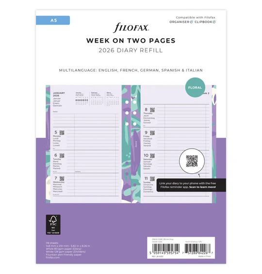 Wees de eerste om “Filofax A5 2026 complete inhoud Floral week op 2 pagina’s” te beoordelen