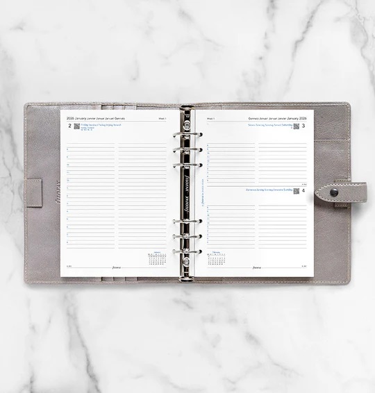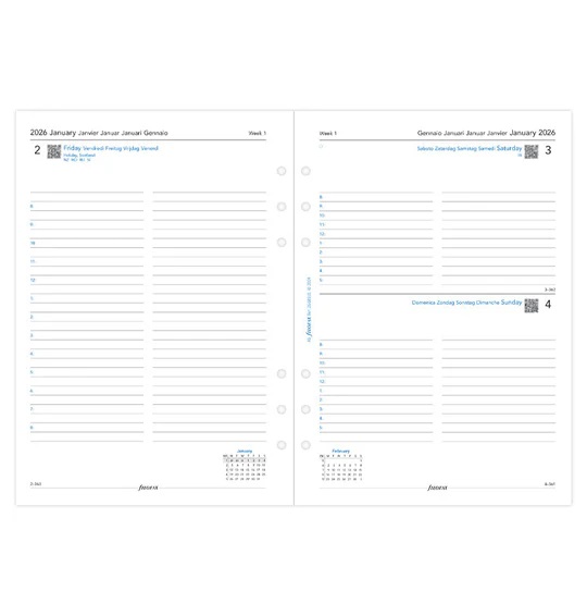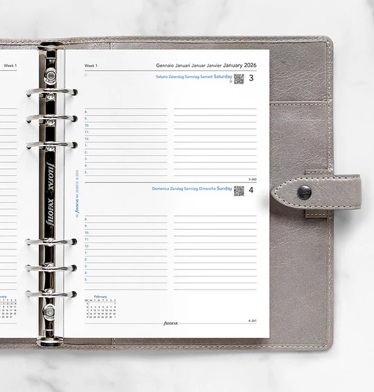 A5 agenda-inhoud, 1 dag per pagina – 2026 – wit, tijdsindeling van 8.00 tot 20.00 uur, 5-talig – Formaat: 15 x 21 cm