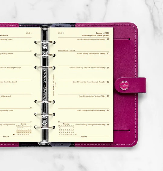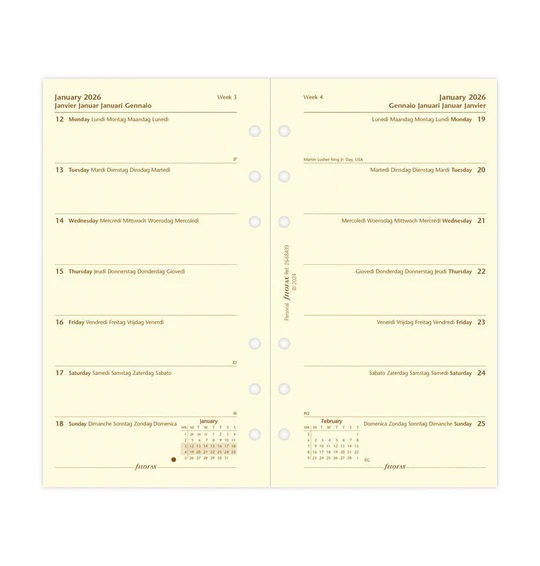 Beheer uw week op één pagina in stijl met onze 2026 1 week 1 pagina agenda vulling in cotton cream, 9,5 x 17,1 cm. Organiseer je week tot in de details met deze week op één pagina agenda in de maat personal, met luxe crème papier.