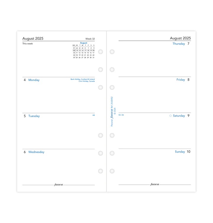 Beheer uw week in één oogopslag met deze 1 week, 2 pagina’s academische agenda, enkel beschikbaar in het Engels. De agenda is wit, Engelstalig en ongelinieerd. Verder jaaroverzichten van het vorige en toekomende jaar, ruimte voor persoonlijke informatie, internationale feest- en gedenkdagen. 80 grms papier en de maten zijn 9,5 x 17,1 cm. Past ook in het clipbook.
