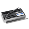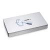 De kalligrafeervulpen met kalligrafiepenpunt voor een bijzonder mooi handschrift. Deze speciale vulpen heeft de van LAMY bekende grip waardoor het schrijven behalve prettiger ook netter wordt. Met aluminium dop en verende clip. Deze set komt met 3 verschillende voorstukken met 1,1 mm, 1.5 mm en 1,9 mm penpunten. Tevens 1 doosje inktpatronen