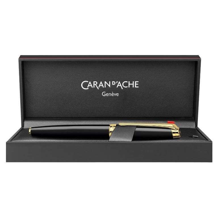 Op de Léman Ebony Black komt de prachtige zwarte lak in al zijn verfijning tot zijn recht. De houder en de dop zijn diepzwart en harmoniëren prachtig met de vergulde clip en accenten. De Penpunt is van van 18 karaats goud, tweekleurig, te gebruiken met de Caran d’Ache converter of inktpatronen. In de vulpenuitvoering is de Léman Ebony Black GT een elegante metgezel met uitzonderlijk schrijfcomfort.