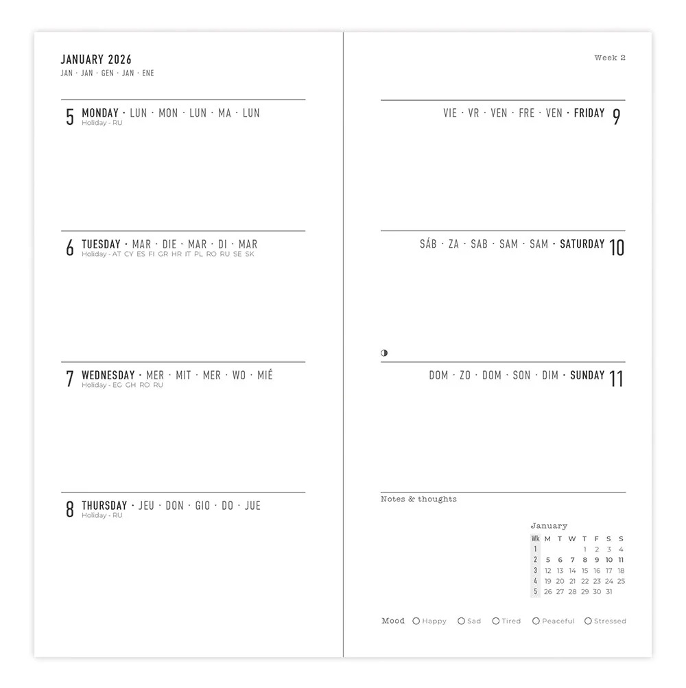 Letts of London Milano Slim 2026 week to view agenda Chocolate