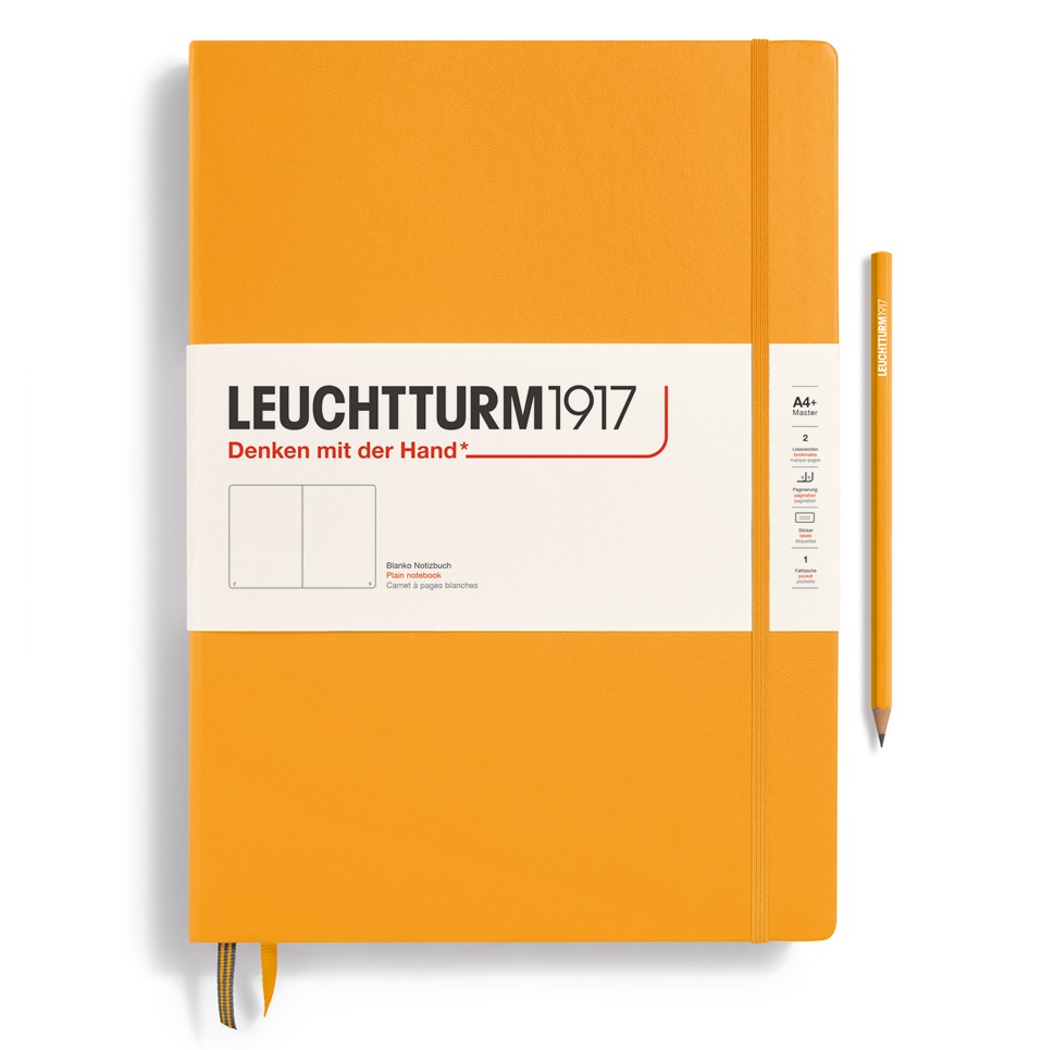 De Classic: De meester van de notitieboeken. Het notitieboek Master Classic heeft 235 pagina’s in een papierdikte van 100 g / m². Het papier van dit iets groter dan A4 notitieboek is zuurvrij. Maak een keuze (blanco, gelinieerd, dotted, geruit) tussen de kleuren rood en zwart.