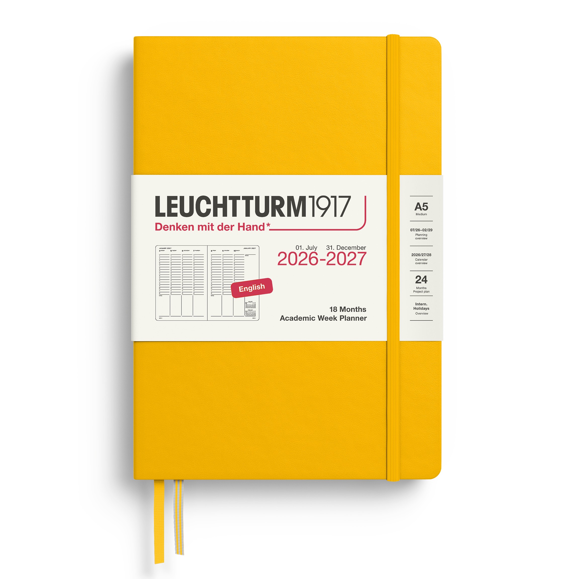 Weekplanner & Notitieboek 2027 18 Maanden, Gelinieerd, loopt van Juli 2026 – December 2027, elke dubbele pagina bevat een pagina met de weekplanner en een gelinieerde notitiepagina. Inclusief alle bekende overzichten en details, is uitbreidbaar vak in de omslag en heeft uitneembare vellen voor notities