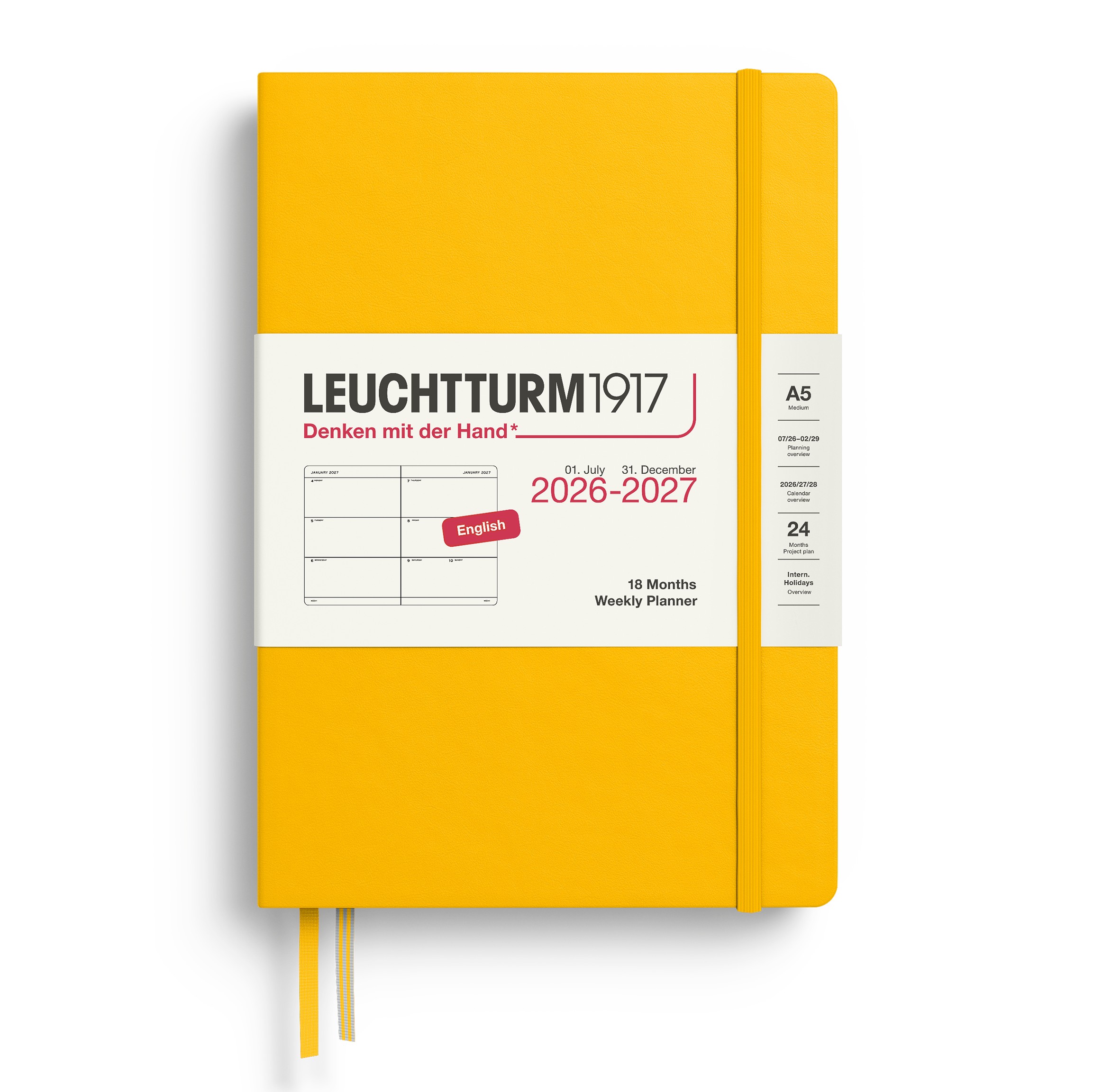 Weekplanner 2027, 18 maanden: Juli 2026 – december 2027, 7 dagen per pagina, Medium (A5) 145 x 210 mm; Hardcover. Inclusief alle bekende overzichten en details en uitbreidbaar vak in de omslag