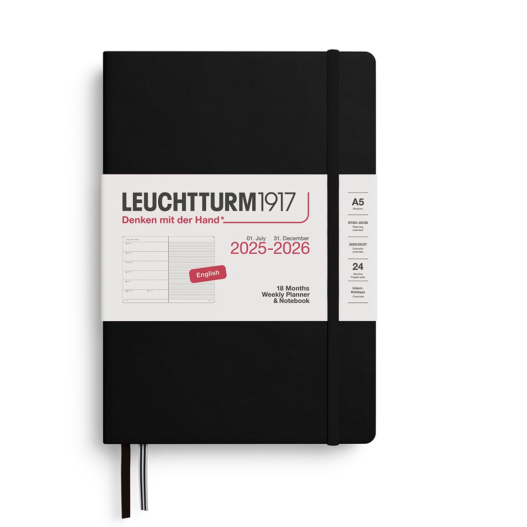 Leuchtturm1917 A5 Medium Weekly Planner & Notebook 2025/2026 (18 mnds) hardcover Black