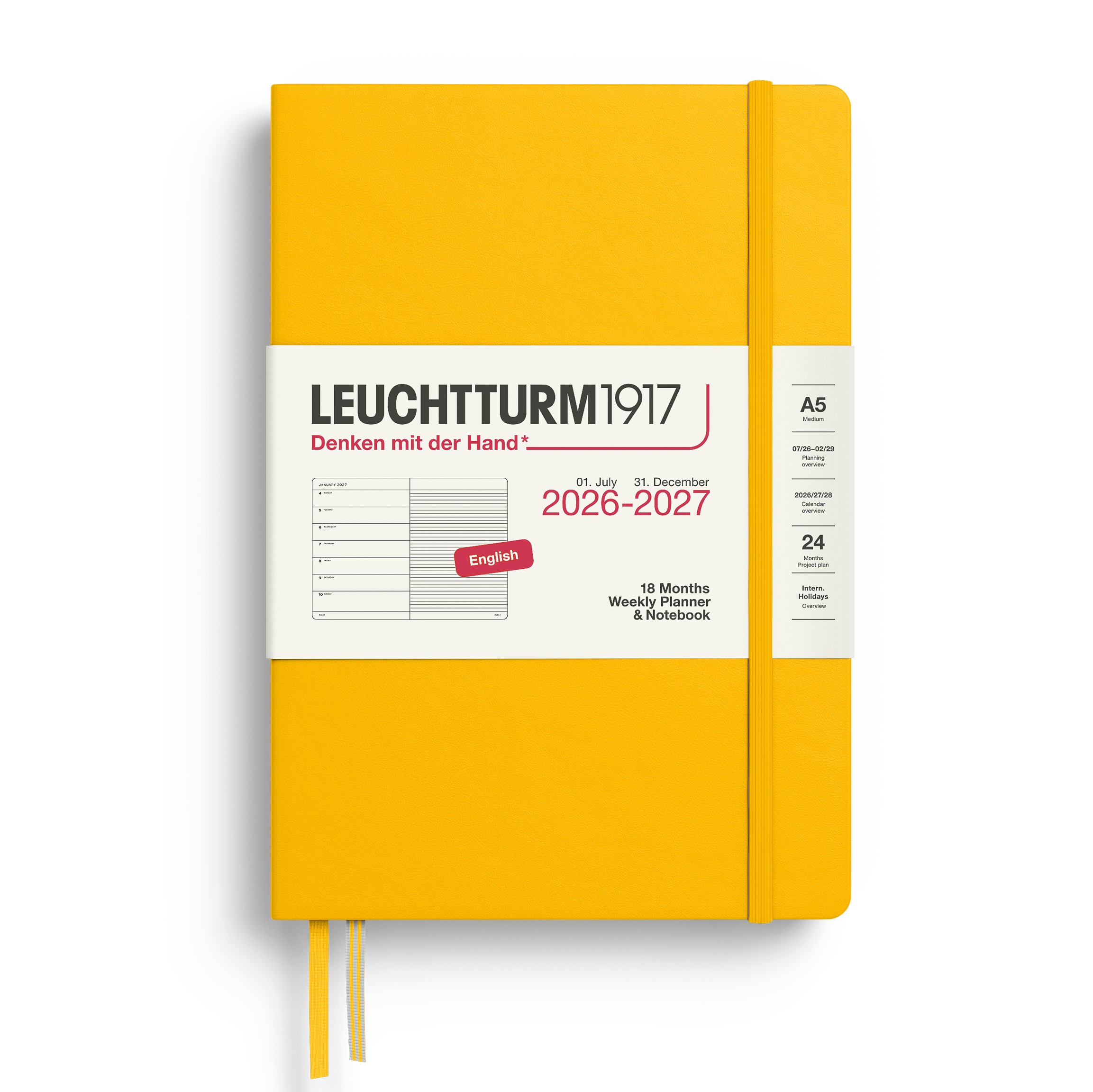 Leuchtturm1917 A5 Medium Weekly Planner & Notebook 2026/2027 (18 mnds) hardcover Sunflower