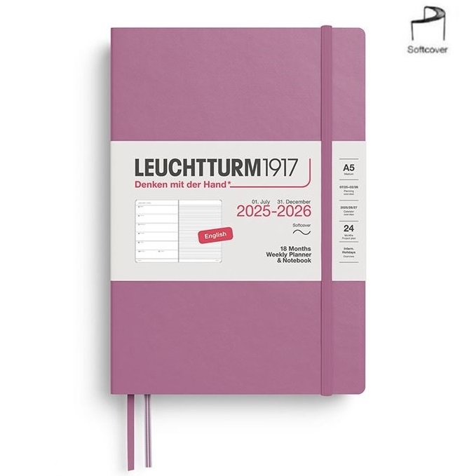Weekplanner & Notitieboek 2027 18 Maanden, Gelinieerd, loopt van Juli 2026 – December 2027, elke dubbele pagina bevat een pagina met de weekplanner en een gelinieerde notitiepagina. Inclusief alle bekende overzichten en details, is uitbreidbaar vak in de omslag en heeft uitneembare vellen voor notities