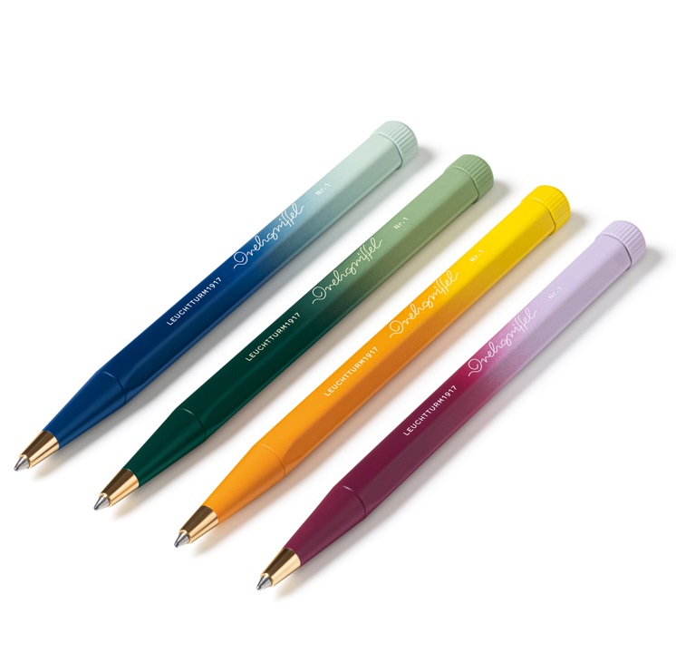 Speciale uitvoering van de Drehgriffel no1, de balpen. De Gradient Edition is een gelimiteerde uitvoering met 4 vatiaties van in elkaar overlopende kleurcombinaties: forest green/sage, de rising sun/lemon, de port red/lilac en de navy/mint green.