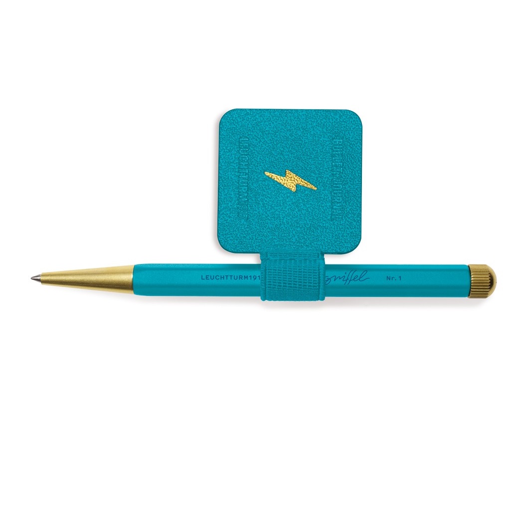 De zelfklevende penloop is voorzien van een reliëfopdruk met de Bullet Journal® bliksemschicht. Deze penloop vormt een stijlvolle schakel tussen het notitieboek en de Drehgriffel. NIEUW IN DE KLEUR TURQUOISE25