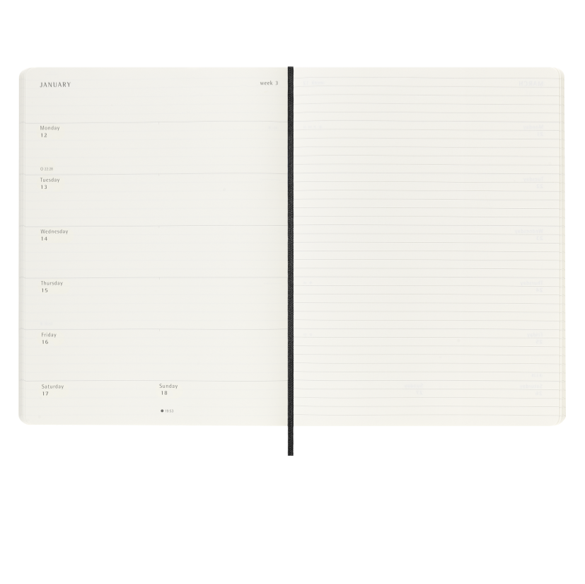 De Week-agenda toont de dagen van elke week aan één kant, tegenover een gelinieerde pagina voor taken en notities. Al de 18-maandelijkse weekagenda’s bevatten stickers om je plannen, evenementen, herinneringen en afspraken te personaliseren.