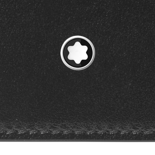 De Meisterstück 6cc, uw dagelijkse kaarthouder, combineert stijl en functie met een compartiment voor visitekaartjes, bonnetjes of andere belangrijke benodigdheden en zes creditcardvakken. Het is gemaakt van luxueus zwart leer en is afgewerkt met het iconische Montblanc-embleem aan de voorkant. Een compact en tijdloos accessoire van kalfsleer, functioneel en handig. Dit kleine maar ruime ontwerp houdt je georganiseerd in stijl.