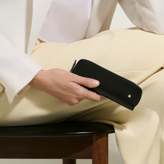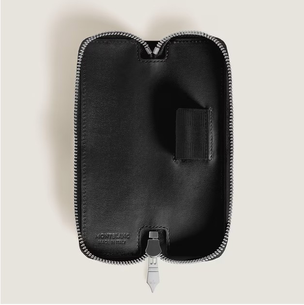 Deze pennenetui is ontworpen voor één pen van het formaat van de Meisterstück Classique of LeGrand en biedt een veilige en stijlvolle manier om uw favoriete schrijinstrument te vervoeren of op te bergen. De etui is vervaardigd van glad leer in klassiek zwart en heeft een opvallende ritssluiting in de vorm van een penpunt, een eerbetoon aan de schrijftraditie van Montblanc.