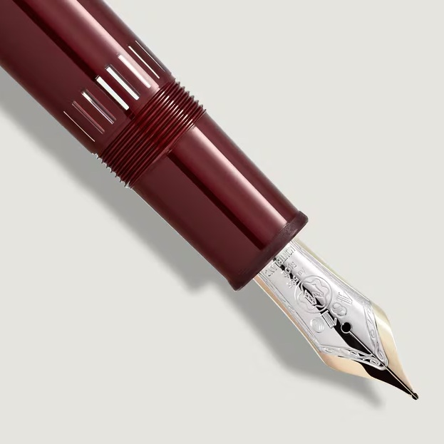 Het tijdloze ontwerp van de Montblanc Meisterstück LeGrand Burgundy Red weerspiegelt de rijke geschiedenis van het Huis, waarbij bordeauxrood al sinds de jaren 20 een prominente kleur is. Deze kleur is sindsdien een vast onderdeel van Montblancs erfgoed gebleven. De dop en de houder van de Meisterstück Burgundy Red vulpen zijn vervaardigd van bordeauxrood edelhars met kenmerkende gouden accenten, waaronder het iconische witte Montblanc-embleem dat in de dop is ingelegd. Met ‘kenmerkend goud’ verwijst Montblanc naar de heldere tint geelgoud die een gewaardeerde kleur is geworden voor de schrijfinstrumenten van het Huis. Schrijft met het pistonvulsysteem.