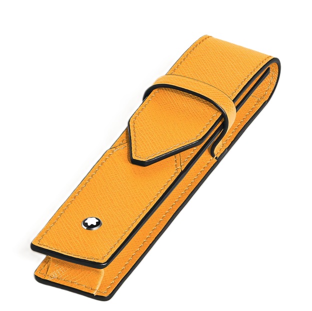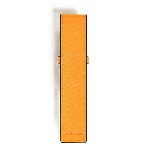 Deze verfijnde pennenetui is een stijlvolle metgezel voor uw meest gewaardeerde schrijfinstrument. De etui is vervaardigd van reliëfleder in een warme saffraankleur. Het overlappende silhouet is geïnspireerd op de vorm van een envelop en verankert de etui daarmee in de schrijfcultuur. De stevige etui is ontworpen voor één pen van het formaat van de Montblanc Meisterstück Classique of LeGrand en past comfortabel in uw zak. maten: 3 x 1,8 x 16 cm