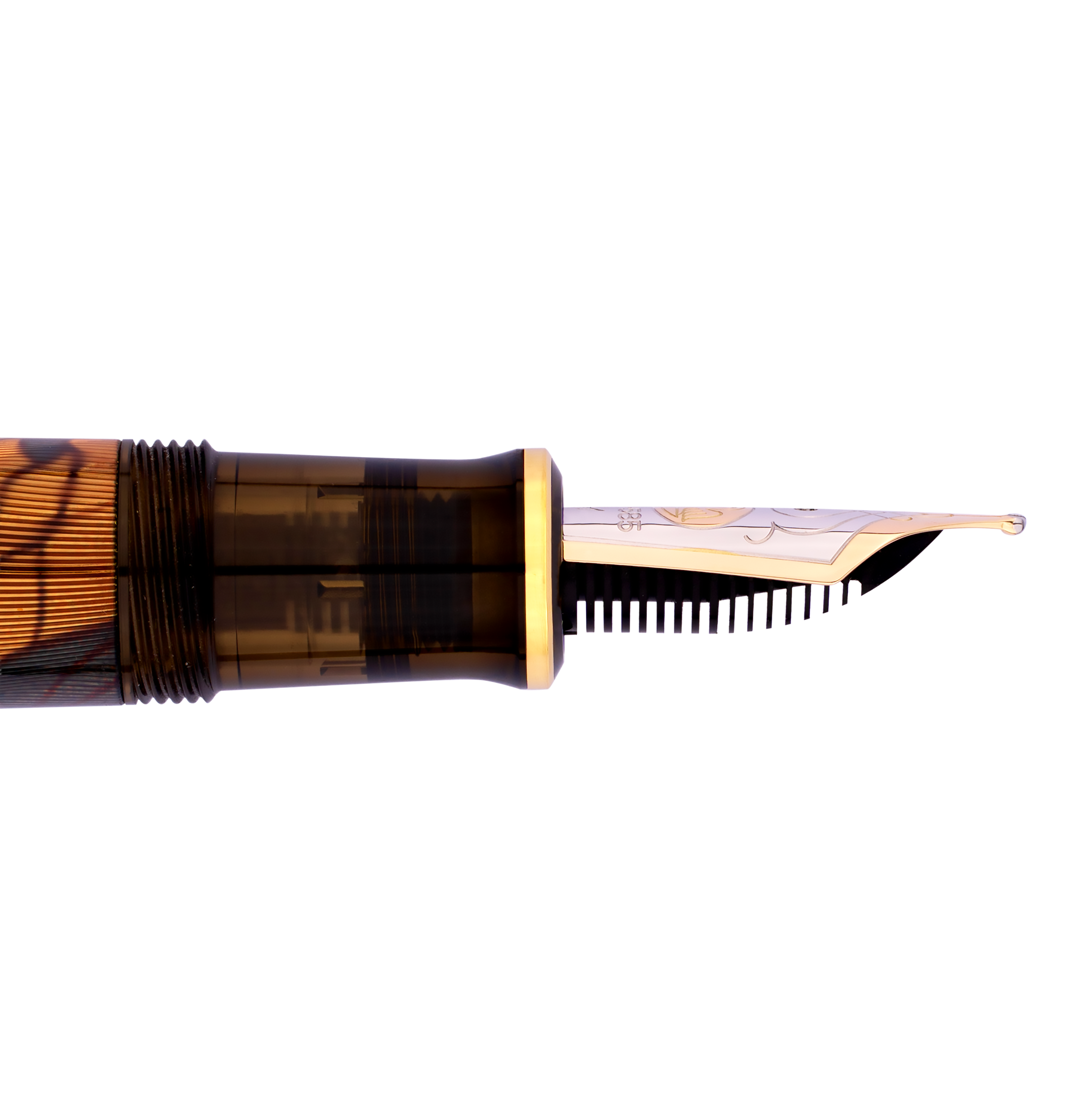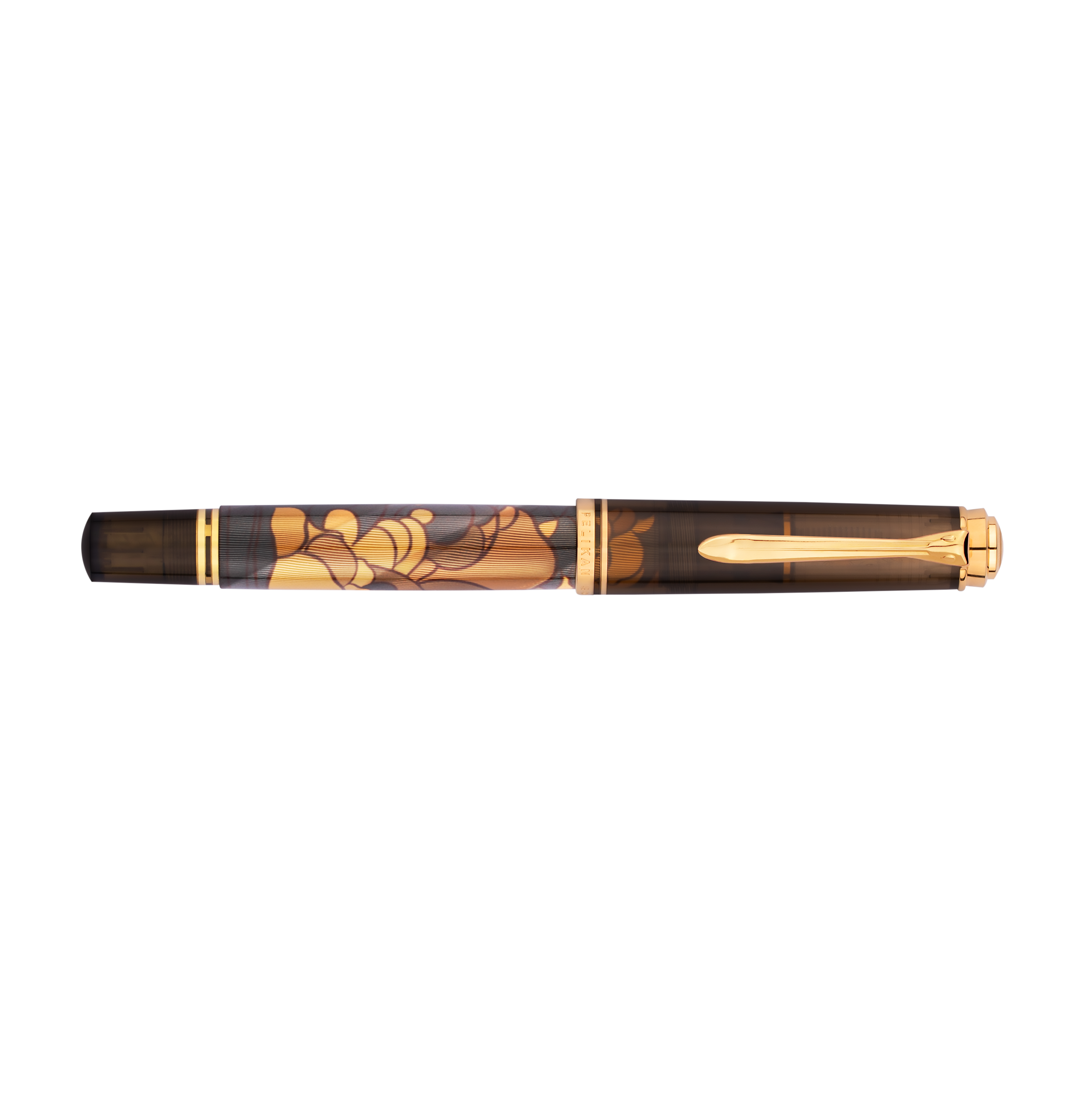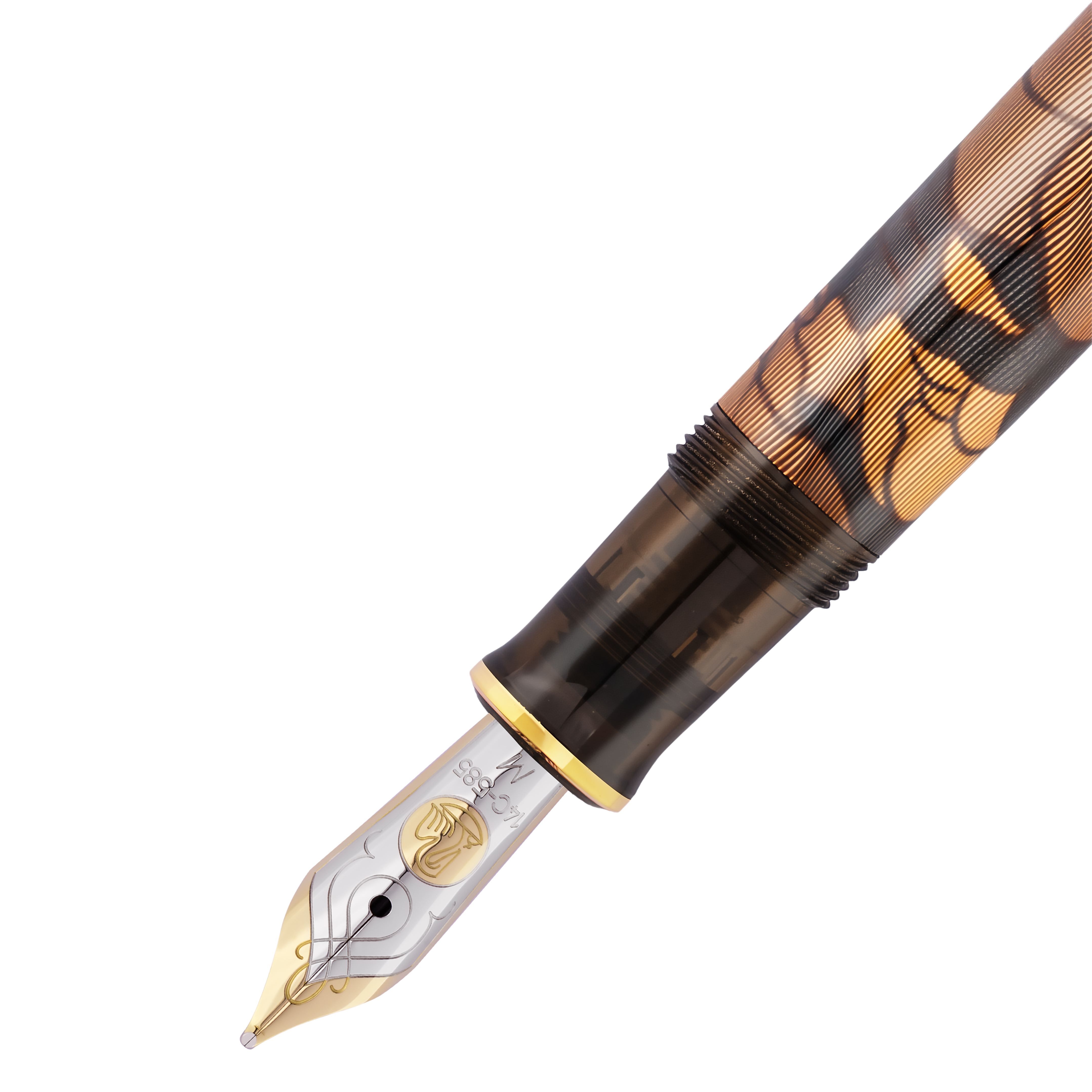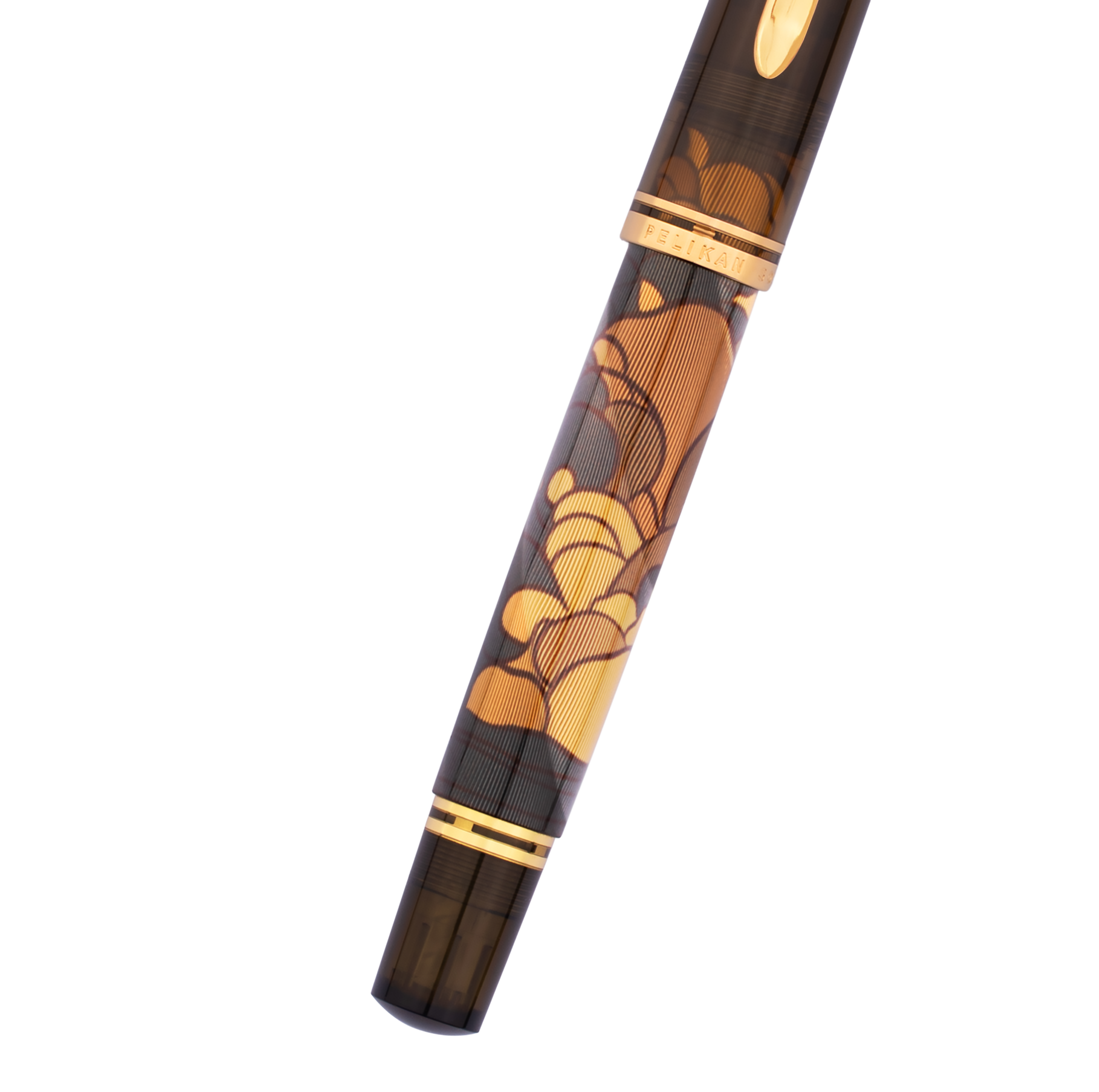 Een subtiel maar sprekend detail uit het oorspronkelijke kunstwerk van Tippel vormt de basis voor het ontwerp van deze editie. De golvende wolkenpartijen uit het affiche van 1899 zijn vertaald naar een abstract, ritmisch patroon op de gedecoreerde huls van de vulpen. De zacht vloeiende contouren spelen met het licht en creëren diepte, beweging en een subtiel glinsterend effect. Omringd door semi-transparante, warmbruine onderdelen van edelhars, verbindt dit motief op harmonieuze wijze historisch kunstenaarschap met hedendaags vakmanschap. De pen is vervaardigd met het geavanceerde Aurora-proces. De houder is voorzien van fijn gegraveerde guilloché-structuren onder meerdere laklagen, wat zorgt voor een stralend oppervlak dat de visuele kracht van het ontwerp versterkt.