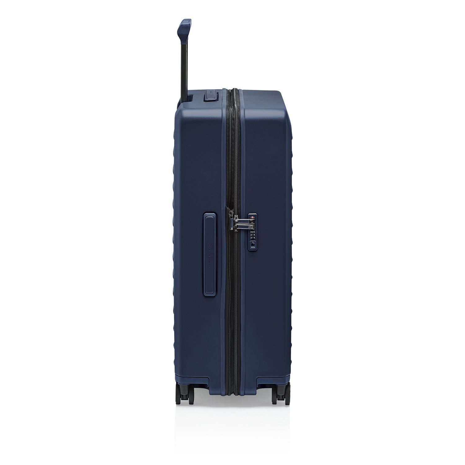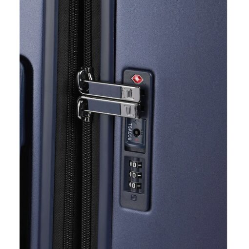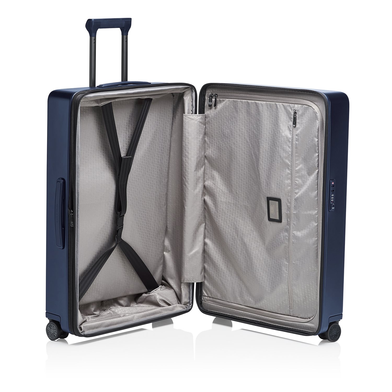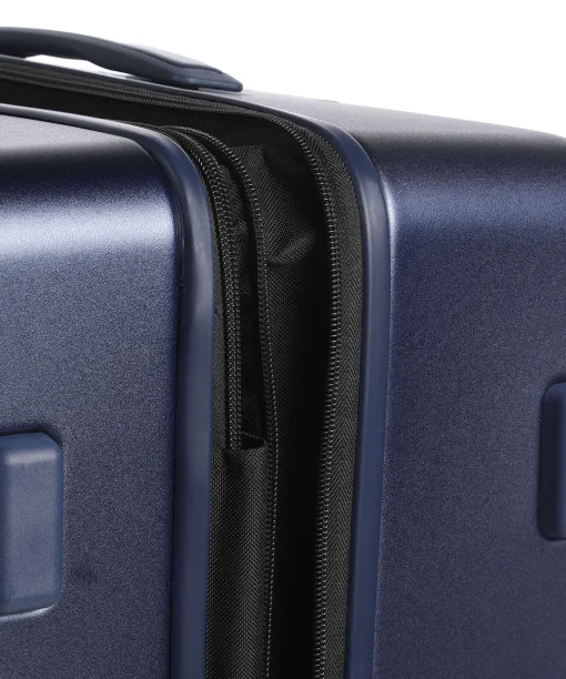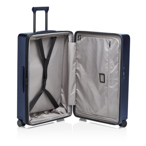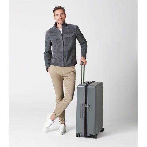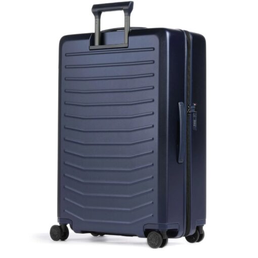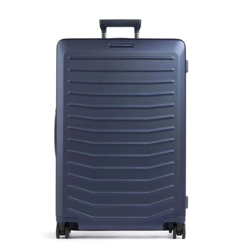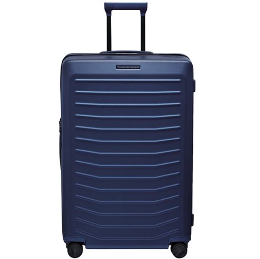 De grote maat koffer is gemaakt van sterk polycarbonaat, is makkelijk te vervoeren dankzij de 360 graden kogelgelagerde, lichtlopende wielen in de stijl van de Porsche Taycan-velgen. De koffer heeft een TSA-combinatieslot en de trekstang is in hoogte verstelbaar. Aan de boven- en zijkant is de trolleyvoorzien van een handgreep. Het interieur is voorzien van een stijlvolle polyester voering, een extra ritsvak, gekruiste inpakriemen en een was- en/of schoenenzak. Aan de zijkant van de koffer bevindt zich een USB-poort voor het opladen van mobiele apparaten. Uitbreidbaar volume met dubbel ritssysteem.