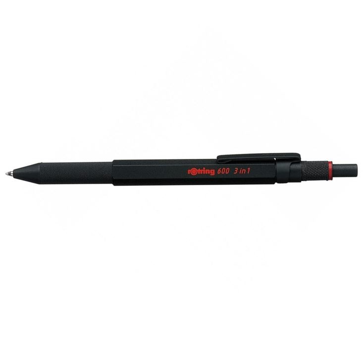 Rotring 600 3-in-1-pen: ’n mechanische vulpotlood 0.5mm, ’n zwarte en rode balpen