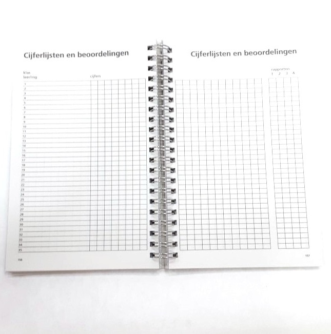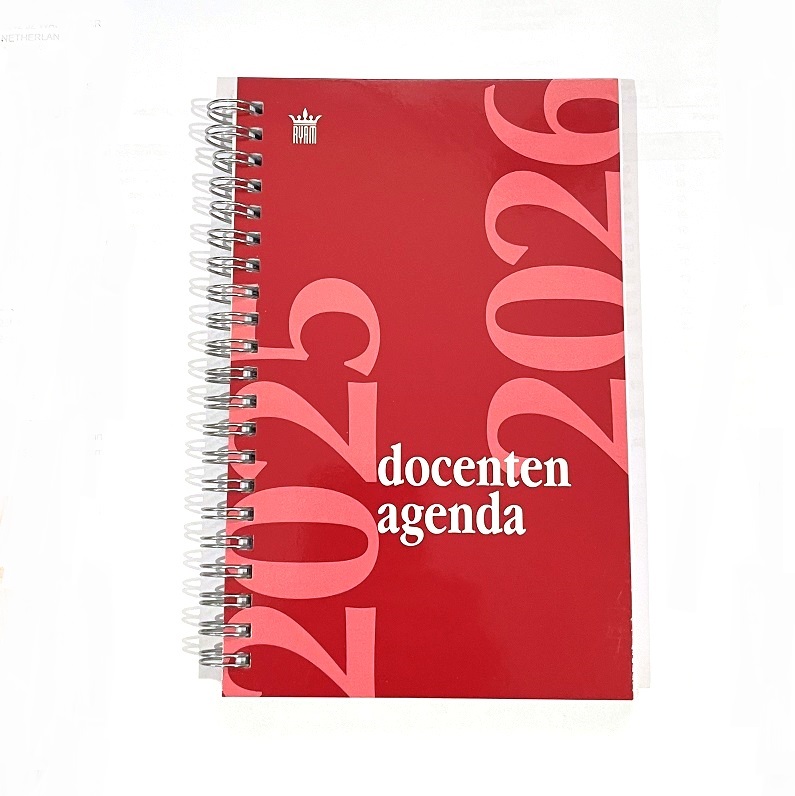 Kartonnen omslag met ringband met 1 week per 2 pagina’s, 12 maanden van augustus 2025 tot augustus 2025, 12 x 19 cm, vanbinnen ruimte voor notities, lesrooster, cijferlijsten, schoolvakanties, overzicht van de examens, klassenindelingen, adreslijsten en maandplanning