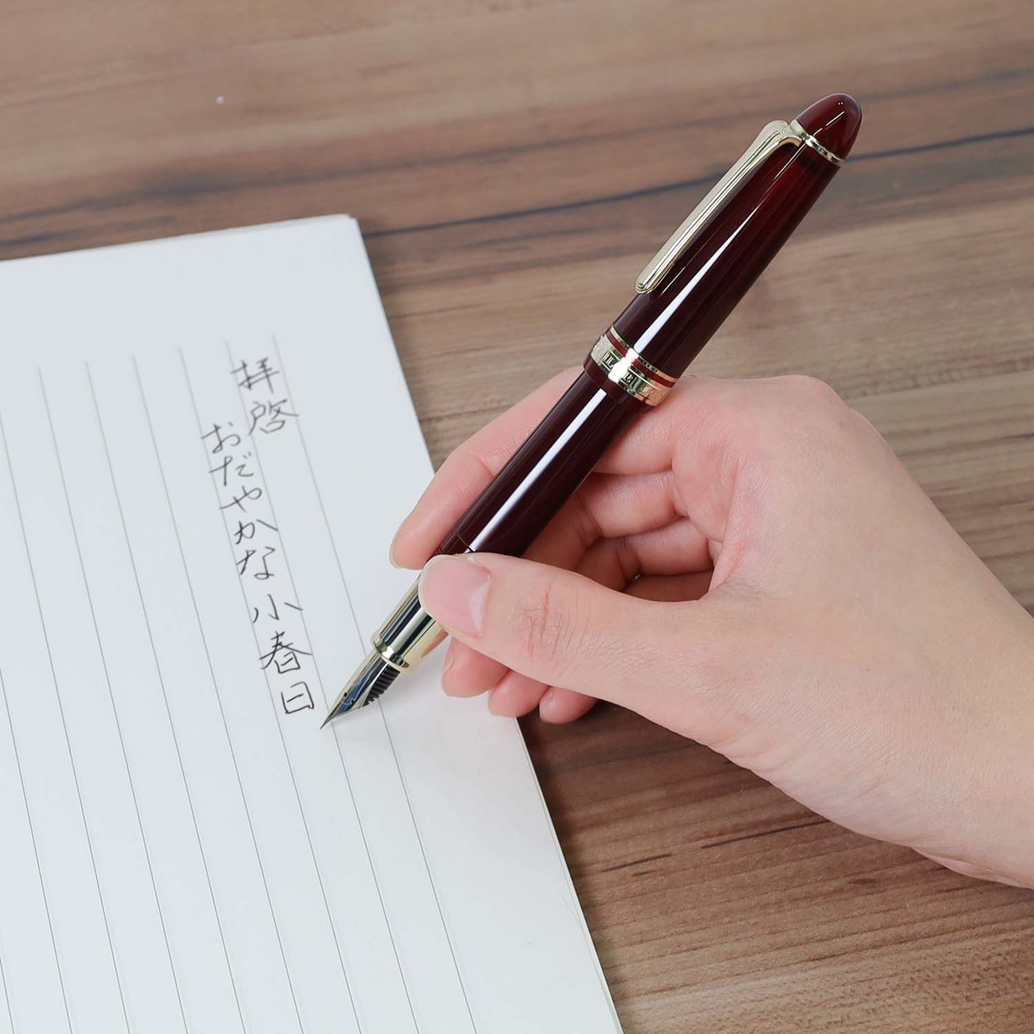 De 1911 Casual L Gold Trim vulpen is uitgerust met een roestvrijstalen penpunt, vervaardigd met dezelfde nauwgezette afwerking als de gouden penpunten van Sailor. De metalen gripsectie voegt een verfijnd gewicht toe en zorgt voor extra stabiliteit tijdens het schrijven. Het ontwerp met een laag zwaartepunt biedt een uitstekende balans, waardoor de pen soepel over het papier glijdt met minimale druk. Elke met de hand afgewerkte roestvrijstalen penpunt levert een opmerkelijk soepele schrijfervaring en benadert het gevoel van een gouden penpunt, met een uitzonderlijke prijs-kwaliteitverhouding.