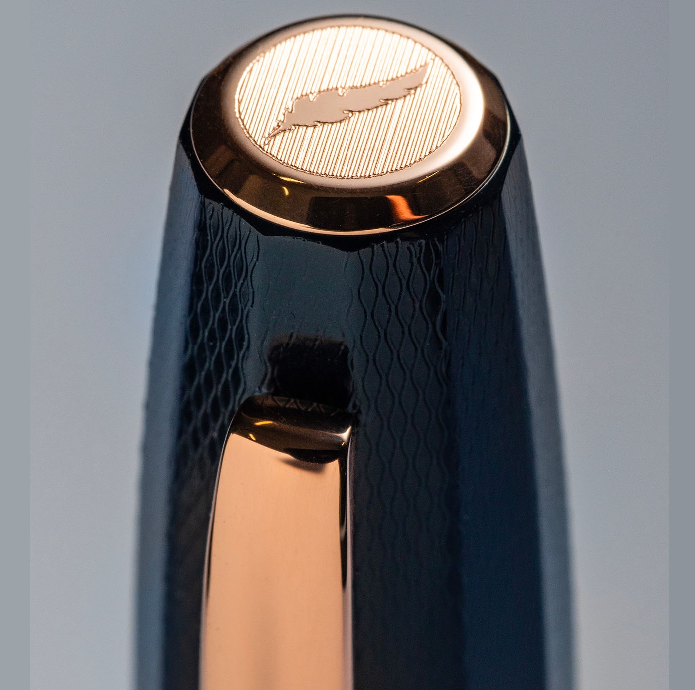 Gehuld in het mysterie van de diepste uren, is de Feel Dandy Notturno de perfecte metgezel voor wie houdt van de elegante stilte van de slapende stad. De nachtblauwe hars roept de perfectie van avondkleding op, terwijl de metalen details de subtiele schittering van straatlantaarns in verlaten straten vastleggen. Het is de vulpen van de nachtelijke ziel, van hen die observeren en reflecteren, van hen die geheimen opschrijven die alleen in het donker schitteren.