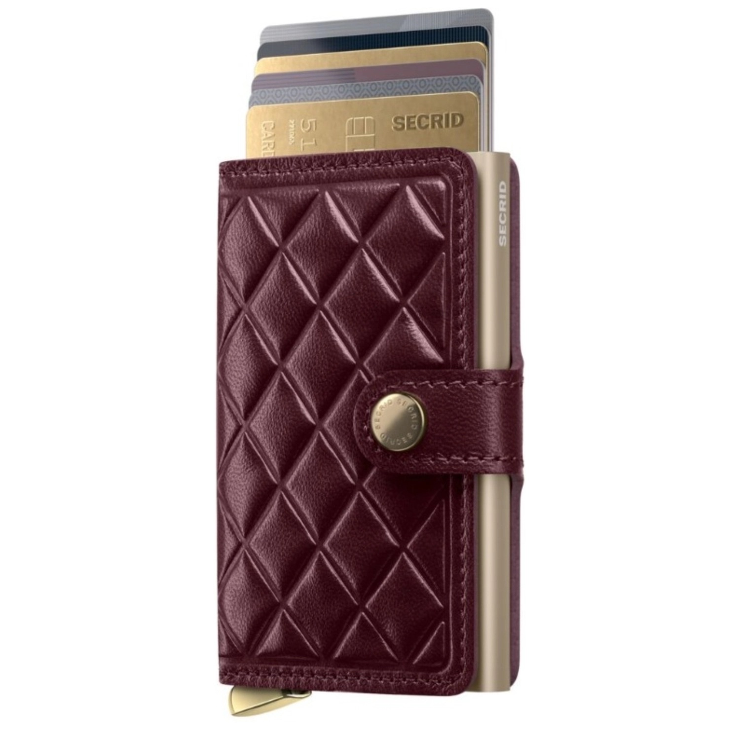 Een zeer stijlvolle portemonnee met een op maat gemaakt diamantreliëf gecombineerd met de hoogste kwaliteit schapenleer. De platte goudkleurige sluitknoop benadrukt het strakke profiel van deze portemonnee. Een stukje dagelijkse luxe.
