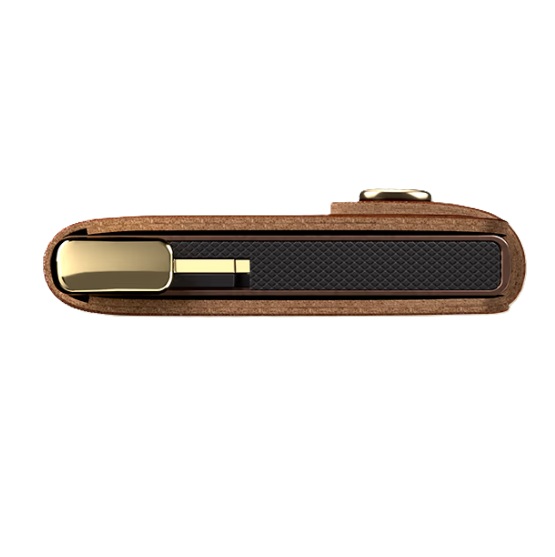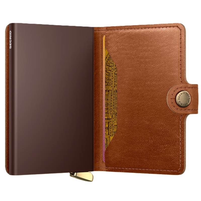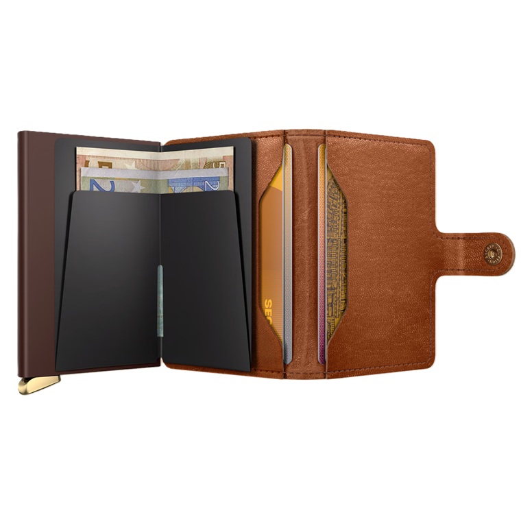 - Speciale Platte sluitknop om het slanke profiel van de premium wallets te benadrukken.