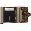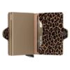 De Twinwallet bestaat uit twee Cardprotectors in een leren hoes met druksluiting. Met de Twinwallet neemt u acht tot twaalf kaarten beveiligd mee. Het binnenwerk biedt daarnaast ruimte voor extra kaarten, papiergeld, bonnetjes, visitekaartjes en muntgeld. De Twinwallet is met haar 70 mm breedte, 102mm lengte en 24 mm dikte minstens de helft compacter dan een traditionele portemonnee met vergelijkbare inhoud. De Twinwallet past goed in een kleine damestas of in een broekzak. Goed voor max. 12 passen, bankbiljetten, visitekaartjes en 4 extra passen. (102 gr.)