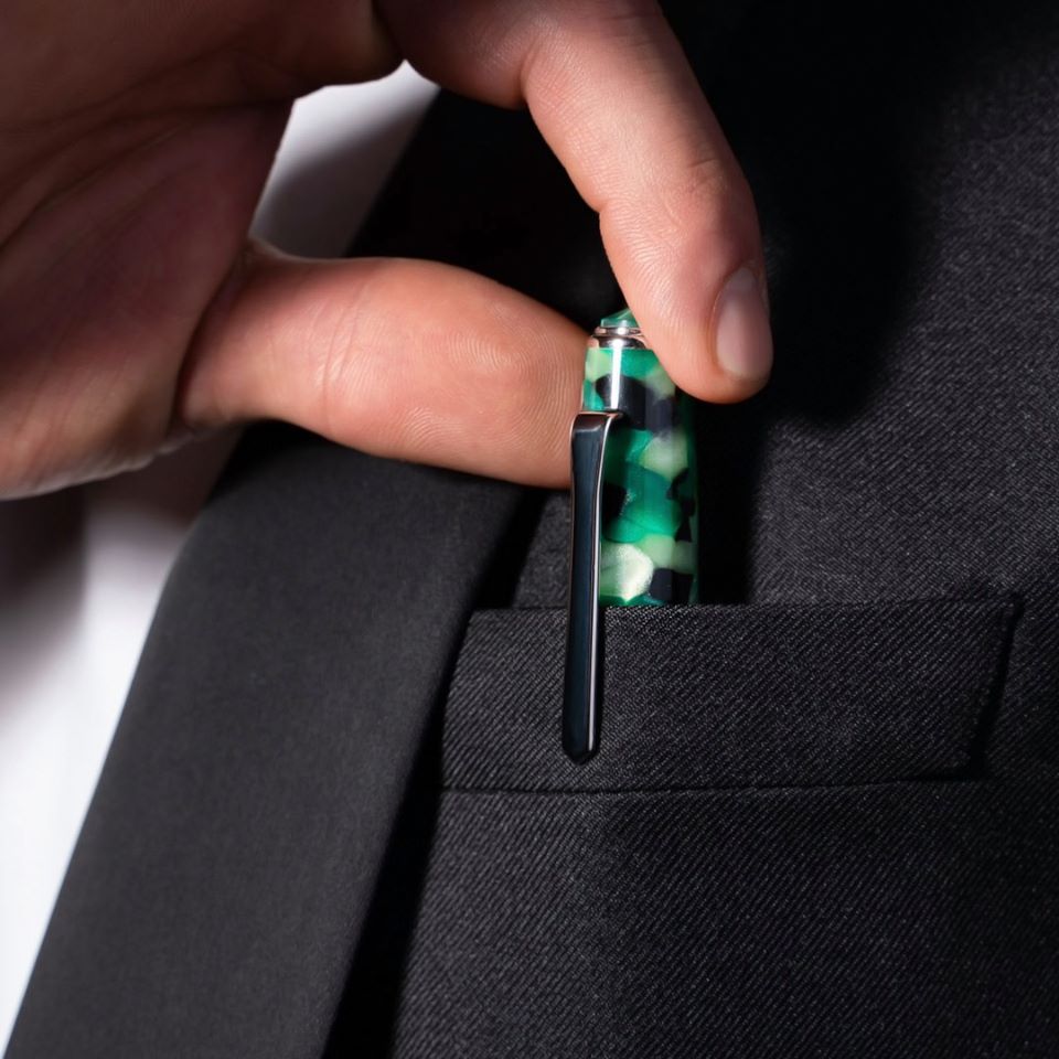 Het N° 60 penmodel is een flashback naar vroeger tijd, de tijd met vetkuiven en rockabilly. Een penmodel met stijl en elegantie, gemaakt van gemarmerd Resin; luxe edelhars en met Palladium clip en accenten.