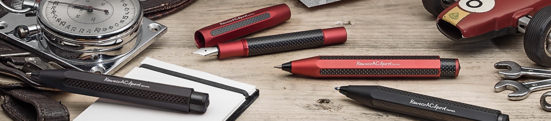 De Kaweco AC Sport is geïnspireerd op het design van moderne sportwagens. Aluminium en koolstofvezel zijn niet langer louter decoratieve elementen, maar beïnvloeden de dynamiek en efficiëntie van een voertuig. Dezelfde principes gelden voor onze schrijfinstrumenten: de verfijnde, matte afwerking van het aluminium in levendige kleuren harmonieert perfect met de geweven koolstofvezel in donkergrijs. Naast de visuele aantrekkingskracht verhogen de materialen ook het schrijfcomfort door hun gevoel en gewicht.