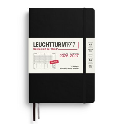 Leuchtturm1917 A5 Medium Academic Week Planner 2026/2027 (18 mnds) hardcover Black