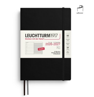 Leuchtturm1917 A5 Medium Weekly Planner & Notebook 2026/2027 (18 mnds) softcover Black