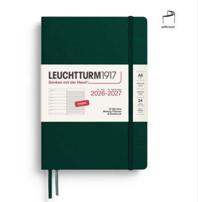 Leuchtturm1917 A5 Medium Weekly Planner & Notebook 2026/2027 (18 mnds) softcover Forest Green